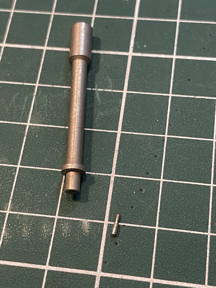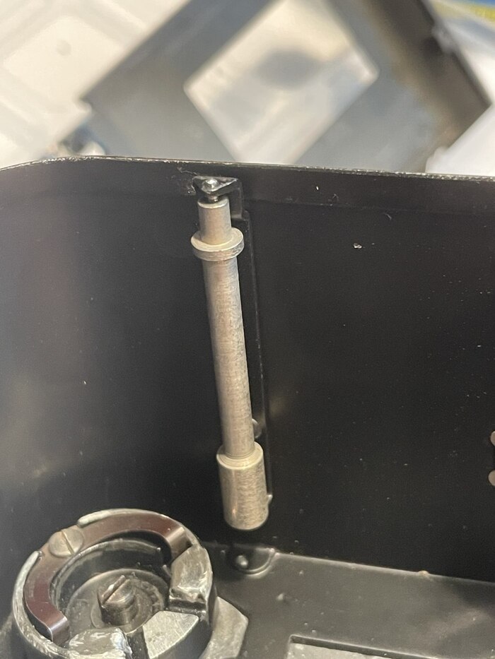 Так же была сломана ось ролика пленки на задней крышке, была изготовлена новая и вклеена.