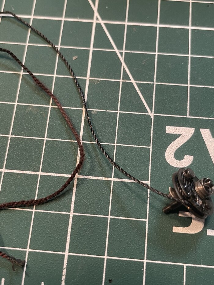 Далее распутываем узелок и снимаем лебедку с зеркала и разбираем механизм дальше, чтобы наконец снять нижнюю затворную часть.