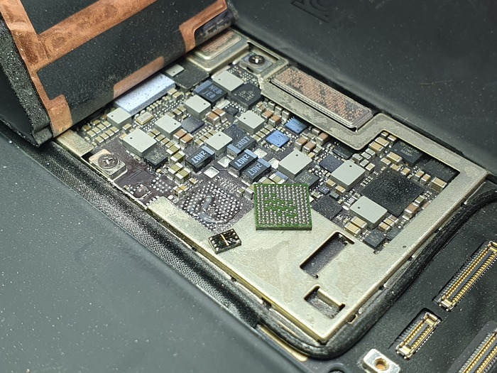 Этот планшет убили неправильной диагностикой и на какой то хер реболлили оперативку. Клиент отказался от восстановления и отдал это мне лет 4 назад. Там ещё и дисплей полоснули, но не сочли нужным сообщить клиенту. Ну а чо, не включается ведь.