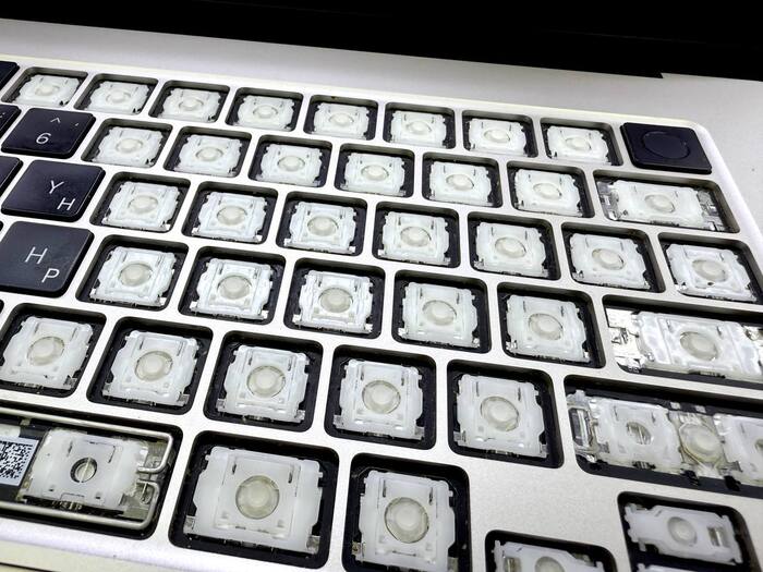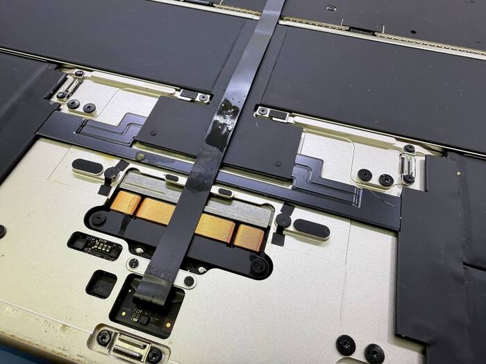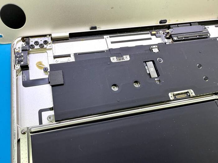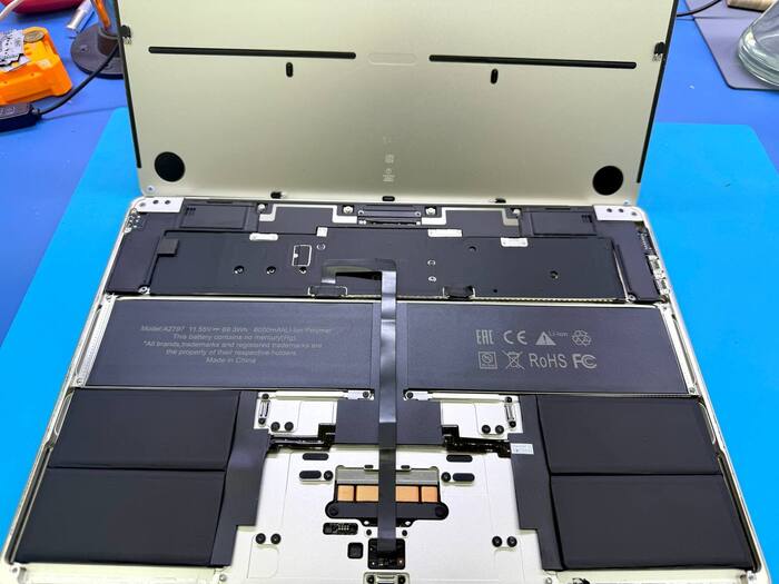 Мы приняли решение снять каждую клавишу по отдельности, промыть и высушить механизм. Это позволило сохранить оригинальную клавиатуру и сэкономить клиенту приличную сумму на замене. Теперь всё нажимается мягко и быстро, как будто залития и не было.3️⃣ Замена аккумулятора.