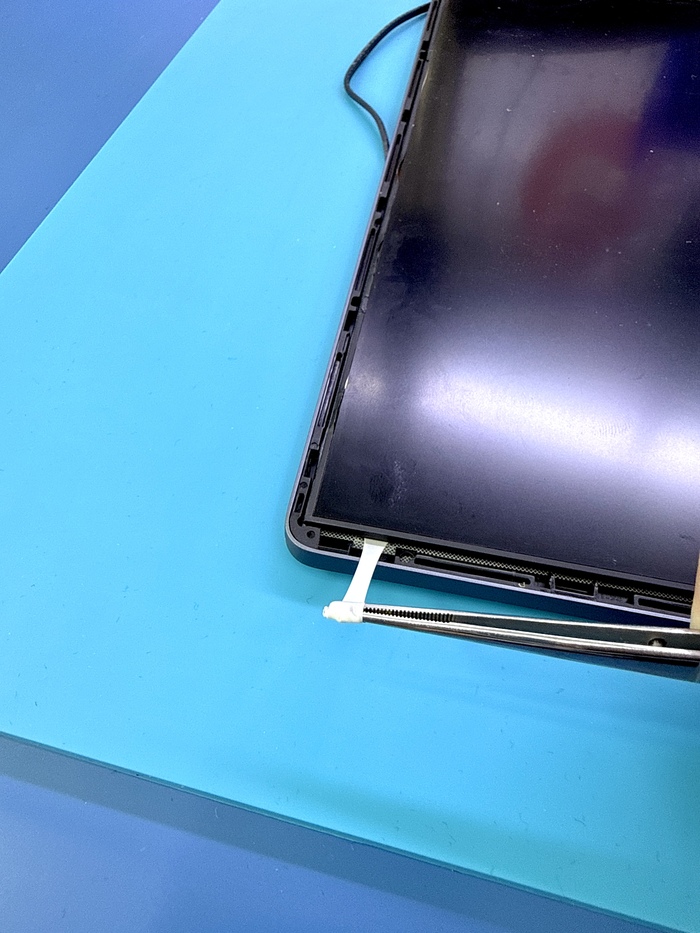 Далее видим белый двухсторонний скотч — при помощи пинцета аккуратно вытягиваем его из корпуса.