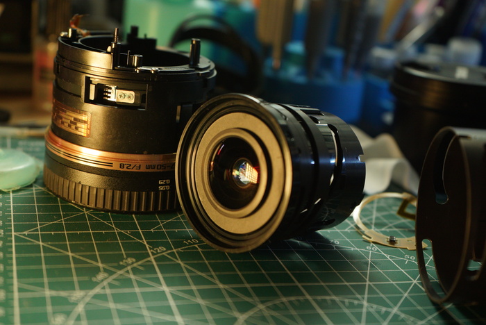 Я ремонтировал разные объективы, но такого извращения, как в данном тамроне я вижу впервые.