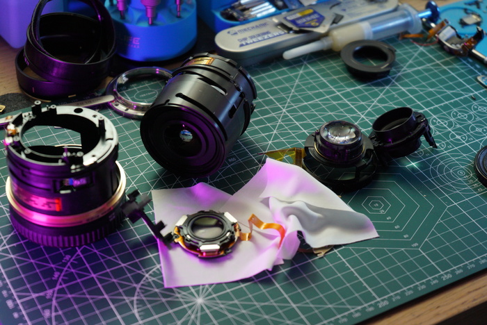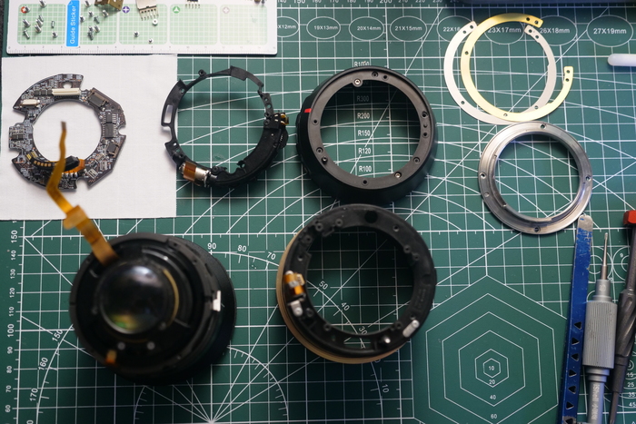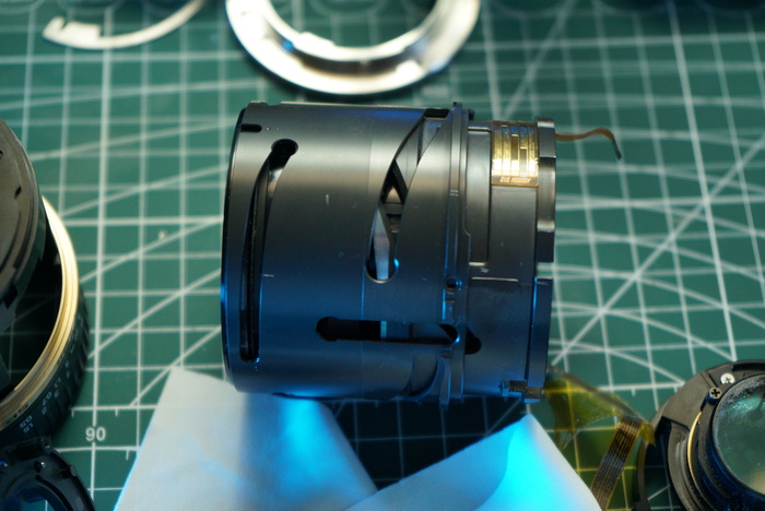 Собираем все обратно и наслаждаемся работой объектива ))))) На самом деле все оказалось не так просто и данный объектив пришлось разбирать повторно, чтобы выставить положение датчика открытой диафрагмы (обычный датчик холла). Дело в том, что при увеличении фокусного расстояния, диафрагма немного прикрывается, и сделано это в данном экземпляре механическим путем, и если диафрагме будет некуда двигаться, то мы опять получим ошибку error 01.
