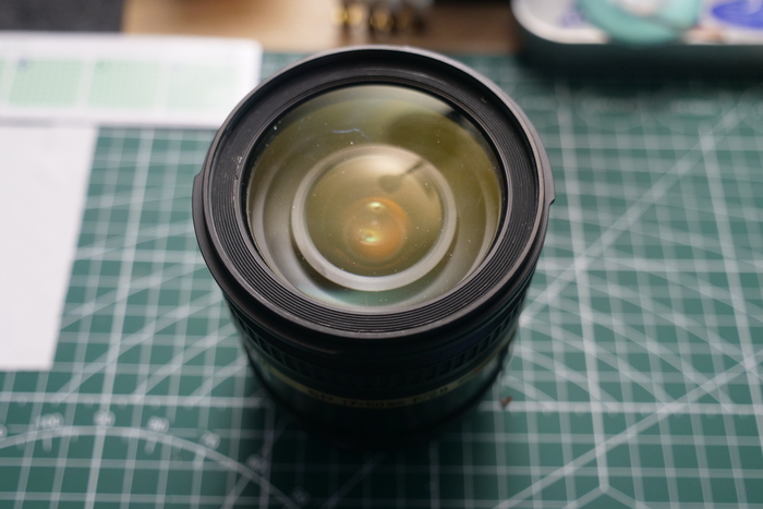Как и свойственно всем Тамронам, под передней линзой пыль, причем обе линзы склеены между собой и все должно быть герметично, как они смогли это сделать для меня загадка. Возможно пылинки туда подсовывают на заводе, а она со временем вылазит под линзу. 😂