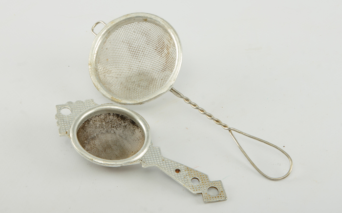 Ситечки. Нижнее имеет клеймо УЗГА - Уральский Завод Гражданской Авиации. Полностью отмыть сложно - щелочные средства отлично убирают чайный налет, но жрут алюминий(