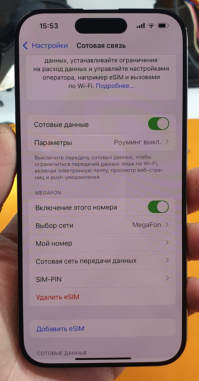 В версиях sim+eSIM, при наборе *#06# должно быть отображение eID и два баркода с imei, а тут всего это: