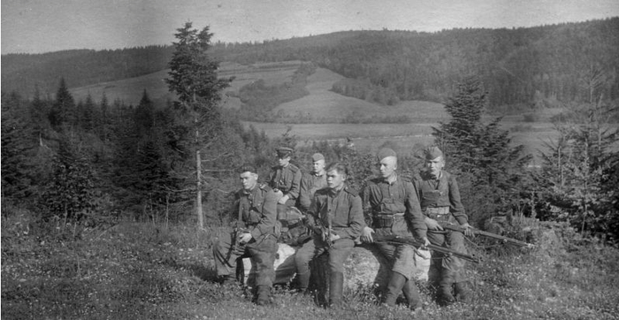 На фото бойцы в/ч 3229 внутренних войск МГБ СССР, участники ликвидации формирований ОУН-УПА, в Карпатских горах.