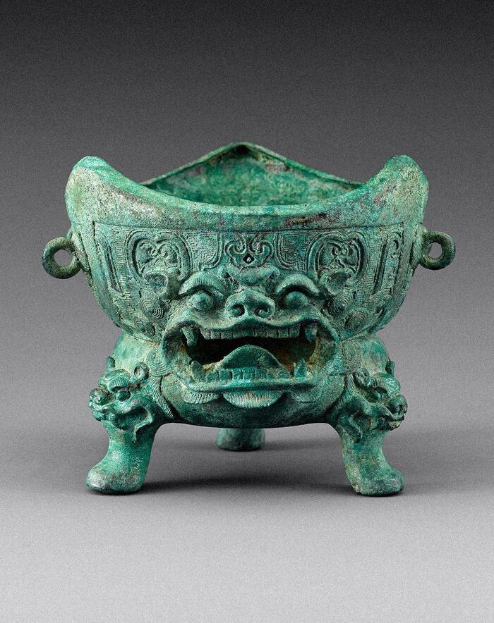 Бронзовая жаровня с изображением лица демона. Корея, династия Корё, XI–XII века н. э. Национальный музей Кореи, Сеул.