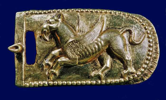 Греко-римская золотая пряжка для ремня, с изображением грифона, I век до н. э.