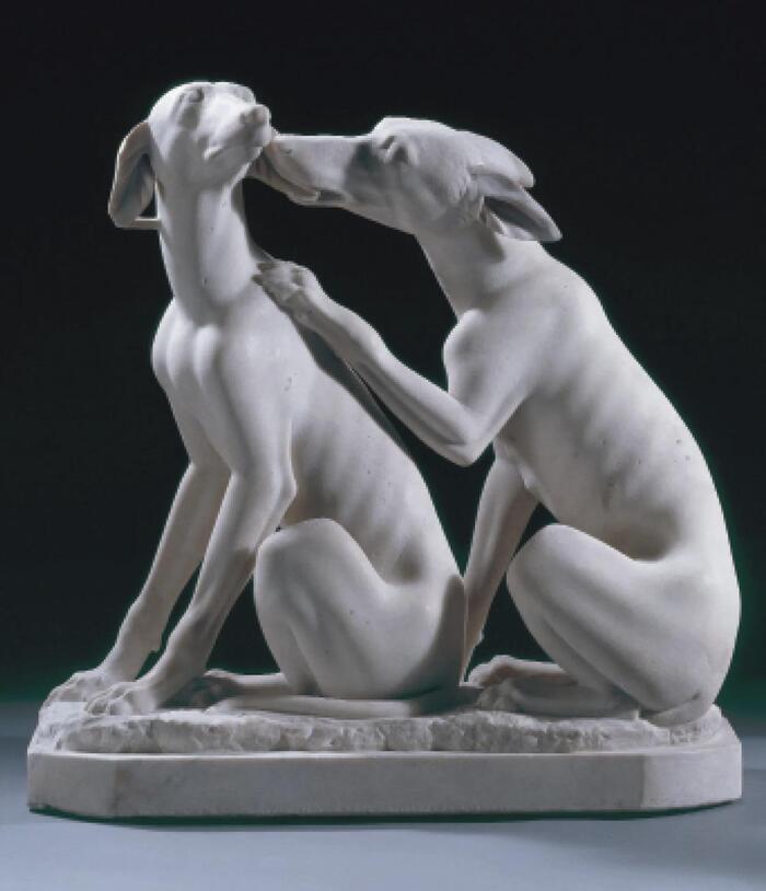 Римская мраморная статуя собак, Датируемая I или II веком н. э. Она была обнаружена в 1774 году на горе Монте-Каньоло, в регионе Лацио, Италия. Британский музей.