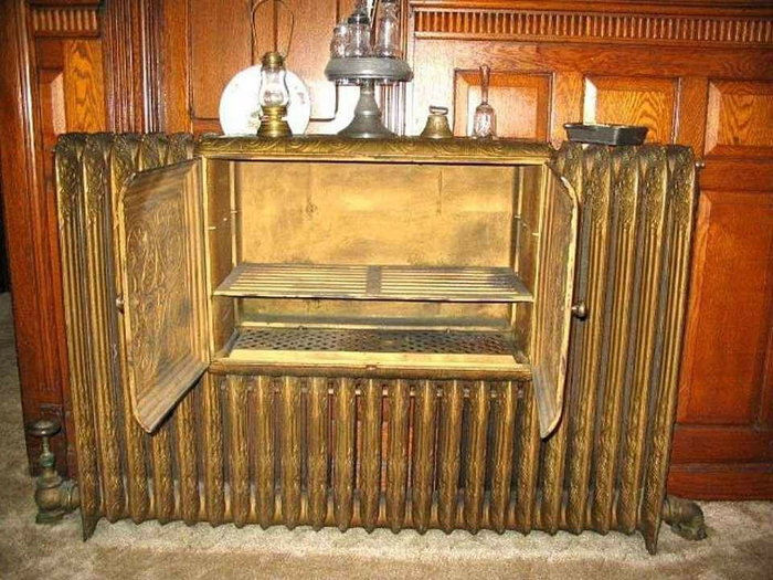 Радиатор викторианской эпохи со встроенной полкой для подогрева пищи.