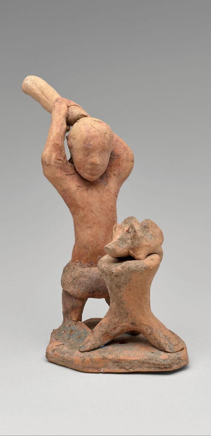 Терракотовая скульптура мясника с поросёнком, VI век до н. э. Из Греции, ныне хранится в Лувре.