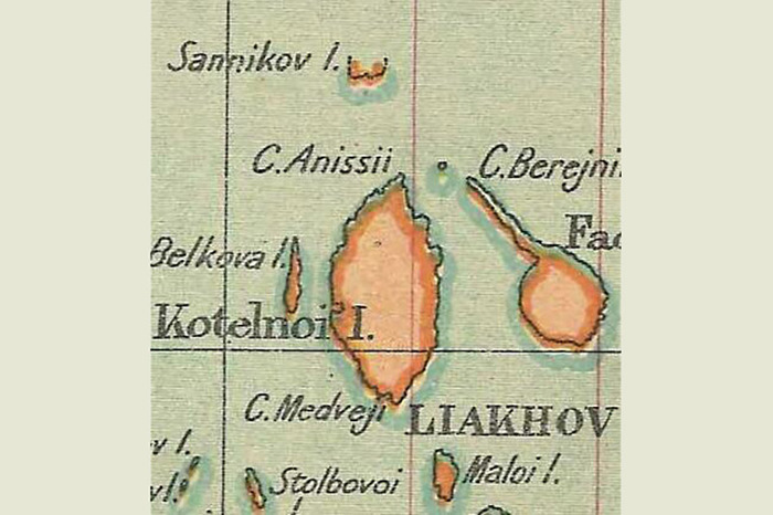 Карта Фаддеевского полуострова на востоке острова Котельный, входящего в группу островов Анжу Новосибирских островов.