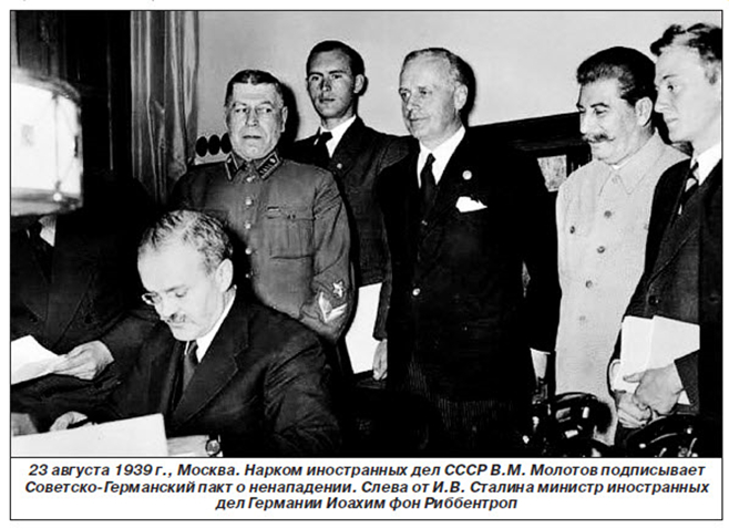 С момента своего основания Советский Союз позиционировал себя врагом западных демократий, но с тридцатых годов он стал понемногу открываться и искать мира с Западом. Наркоминдел Литвинов заключил оборонительные пакты с Францией и Чехословакией и пытался кооперировать с демократиями для сдерживания немецкой экспансии. Это ему не удалось, и разгневанный политикой умиротворения агрессора Сталин заменил его 3 мая 1939 года на германофила Молотова. По мере того, как демократиям не удавалось убедить деспота в искренности своих намерений, сделка с германским диктатором представлялась всё более выгодной. Она и состоялась в августе 1939 года, и три недели спустя Красная армия вошла в Польшу за своей долей трофеев.