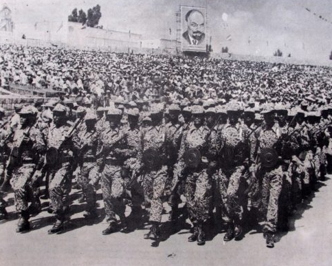 Эфиопское Народное ополчение с ППШ и ПД марширует по площади Революции. Фото 1977 года