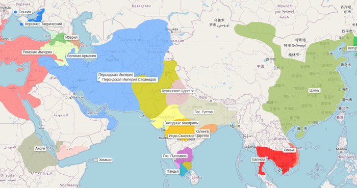 Персия (Сасаниды): У них был «Император-младенец». Шапур II (которого короновали еще в утробе матери) рос. В 310-х ему было 1-10 лет. Страной правили аристократы. Арабские племена из пустыни вовсю грабили южные провинции Персии, пользуясь тем, что в стране нет «царя-воина». (Спойлер: когда Шапур II вырастет, он им очень жестоко отомстит).