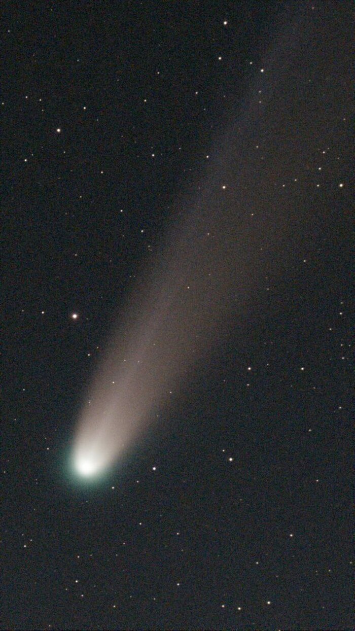 Комета Lemmon всё-таки не распалась и не погасла, я вас и себя наебал в прошлом посте, каюсь😏. Глазом её не видно в зоне жёлтой засветки, но зато видно в дешманский монокуляр "Бушнел" с озона за 500 рублей (апертура 40мм). Думаю, в подзорки видно ещё лучше, если кто затарился когда-то) Я наблюдал комету в телескоп 114мм — и видел примерно то, что на первой фотке, без особо выразительного хвоста.