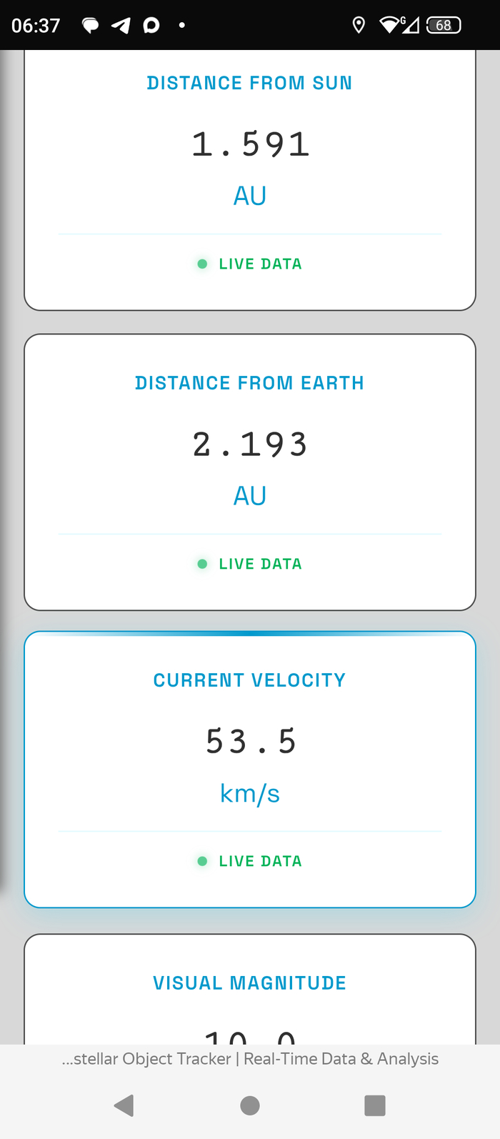 На трекере, заявленном как онлайн- ресурс скорость кометы упала до 55,7 км/сек.