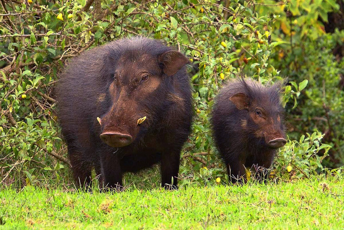 Действительно, мы имеем дело с самым крупным представителем семейства свиных. Крупные самцы могут достигать массы двухсот семидесяти пяти килограммов. Для сравнения вес нашего обычного кабана даже в рассказах охотников с выдающимся воображением не превышает двух центнеров.