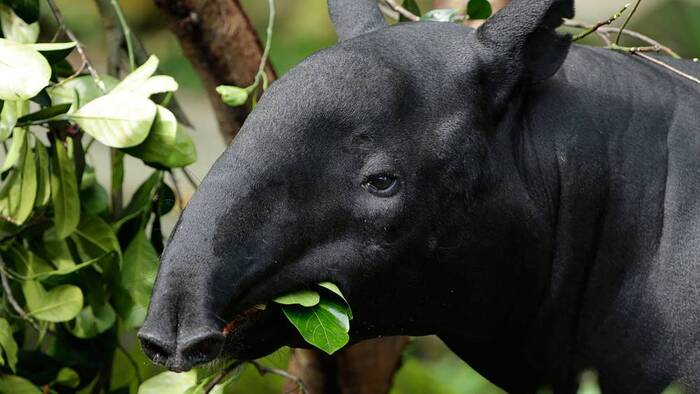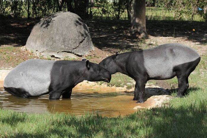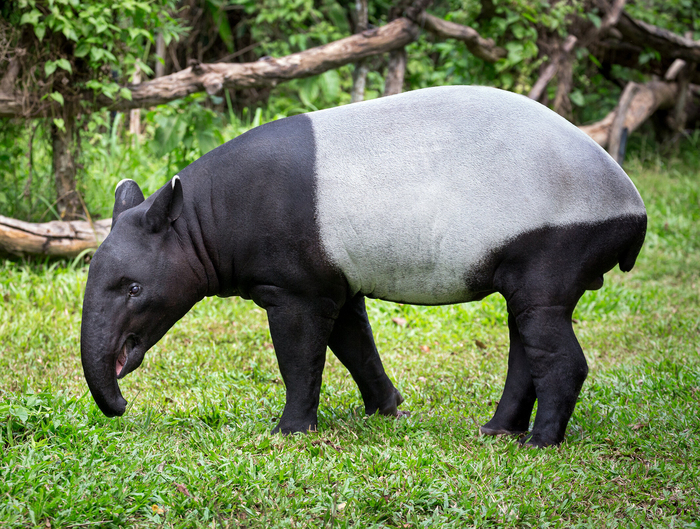 Обитают эти прикольные чёрно-белые звери на острове Суматра, а также в Малайзии и Таиланде. Приходятся чепрачные тапиры дальними родственниками носорогам, и, как и их соседи, суматранские носороги, на сегодняшний день находятся под угрозой исчезновения.