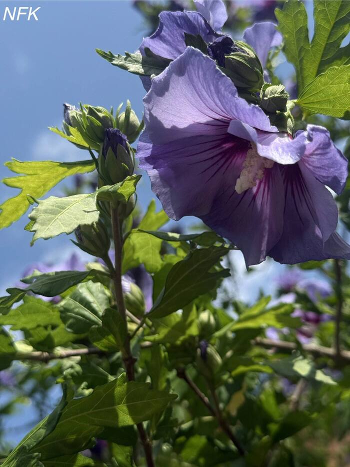 Цветет он шикарно: называют этот оттенок и синим, и сиреневым, и даже фиолетовым. Из названия понимаем, что «синий» самый правильный.Каждый такой цветочек "живет" всего один день, зато сразу после увядания одного распускается другой, и так деревце будет радовать своего хозяина с июня и до устойчивых заморозков поздней осенью.