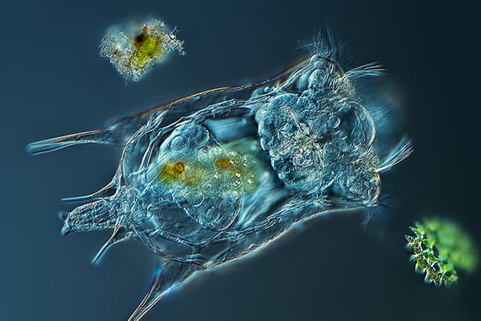 Перед вами на фото – коловратки, микроорганизмы, являющиеся одним из самых маленьких многоклеточных животных нашей планеты. Насколько маленьким? Ну, настолько маленьким, чтобы измерять его можно не миллиметрами, а количеством клеток.