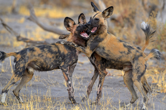 В дикой природе у гиеновидных собак два основных врага: львы и гиены.