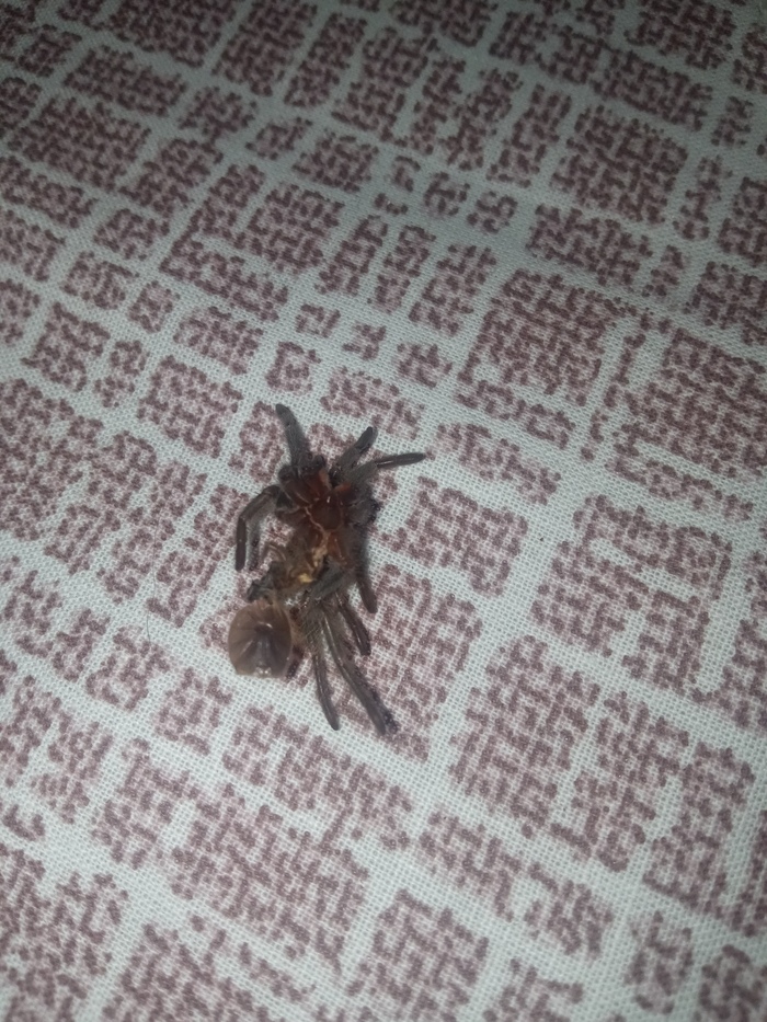 Не стоит эксперементировать с кормежкой птицееда, ибо закончится это не так радужно, как в моём случае. Брюшко паука может лопнуть, либо на нём образуется грыжа.