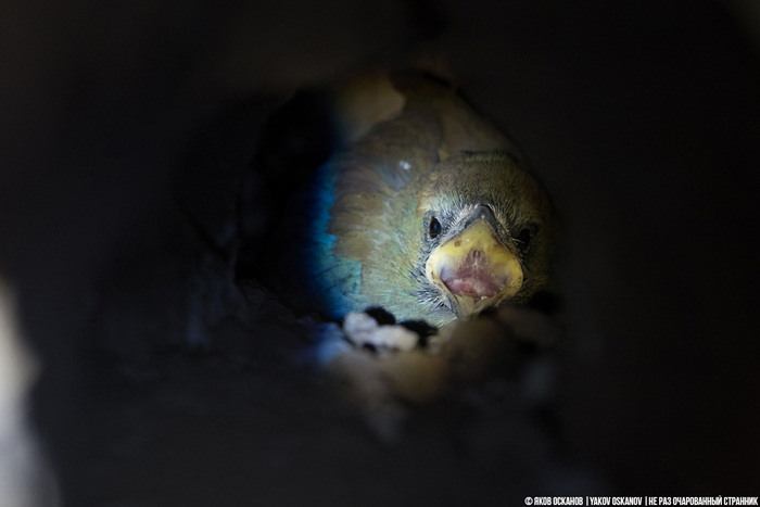 Поэтому сверхзадачей фотографа-анималиста является поиск норы хоть сколь-нибудь низко расположенной относительно предполагаемой точки съёмки. Яйца откладывает наша модель в середине июня, а в начале июля у неё появляются маленькие пернатые троглодиты.