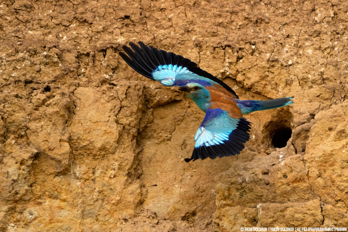 Ибо гнездиться она норах, таких же тёмных, как её душа. И что самое неприятное, норы она свои роет на отвесных стенах обрывов, обычно так высоко, что если хотите снимать вблизи, то придётся делать это снизу вверх, в весьма невыгодном ракурсе.