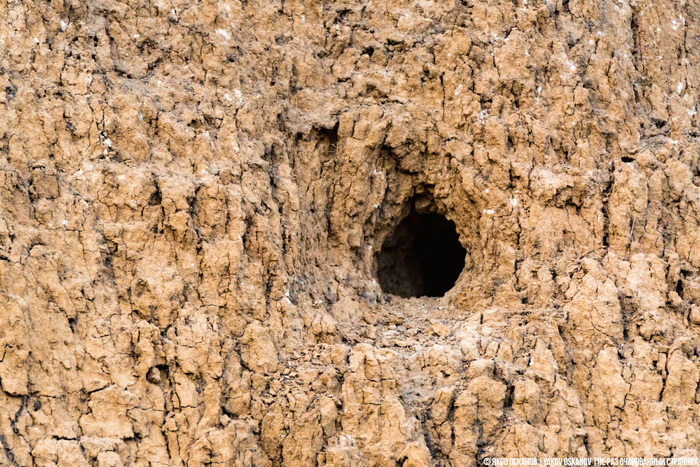 Нам повезло. Ну, как повезло? Пришлось две недели по выходным объездить не одну сотню километров и обойти не один десяток обрывов, чтобы найти подходящую для съёмки нору.