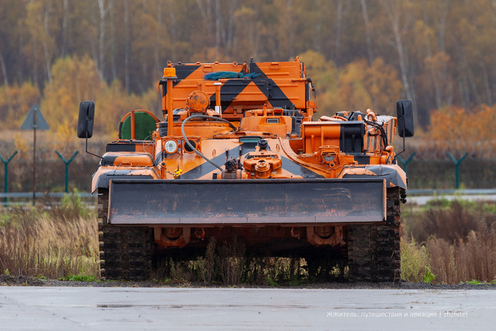 В аэропорту Домодедово есть уникальная машина БРЭМ-1, созданная на базе танка Т-72. Расшифровывается название так: бронированная ремонтно-эвакуационная машина.