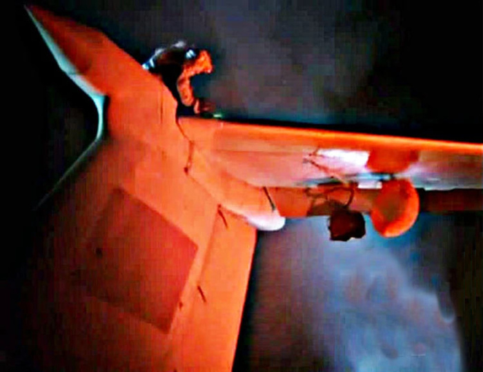 Но во время подготовки декорации и сам фюзеляж загорелись раньше времени. Эти кадры всё же вошли в фильм. После взрыва первого самолёта в вымышленном городе Бидри видно, как разгоняется и взрывается двухмоторный макет самолёта, а уже в следующем кадре горит четырёхмоторный. Это и есть Ту-114.