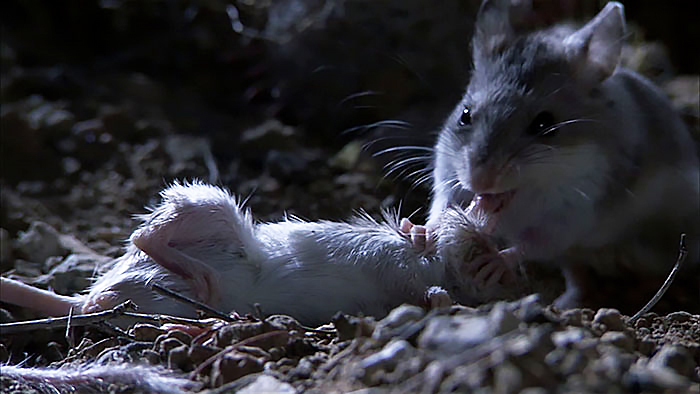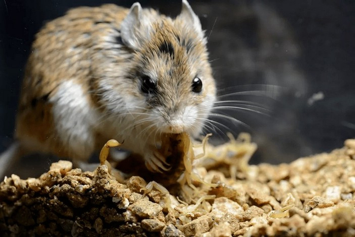 А если один из соседей проиграл до этого бой убитой хомячком сколопендре, то наш герой не побрезгует закусить и тушей павшего собрата. Впрочем, более мелких грызунов он поедает не только в уже убиенном виде, но и нередко охотится на них самостоятельно. В экспериментах американских учёных скоприоновые хомячки только так загрызали и пожирали лабораторных мышей.