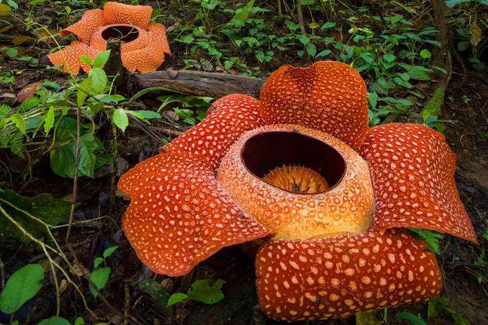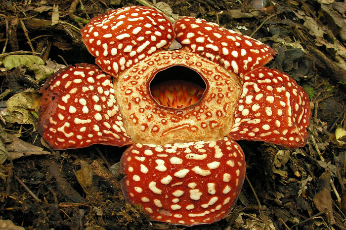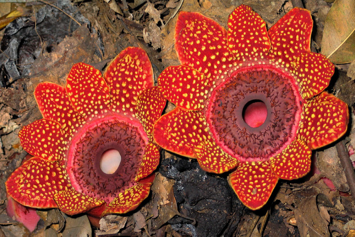 Раффлезии – довольно скромный род, к которому относится всего около тридцати видов. И каждый вид обладает внушительными цветами. Среди них раффлезия Арнольда – бесспорный лидер. Её цветы превышают в диаметре метр, а масса одного цветка может достигать десяти килограммов!