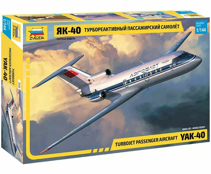 Як-40 — легендарный трёхдвигательный турбореактивный самолёт, ставший первым в мире лайнером для местных авиалиний протяжённостью до 1500 км. Разработанный в 1964 году ОКБ Яковлева, он впервые поднялся в небо 21 октября 1966 года. Крейсерская скорость Як-40 достигает 510 км/ч. Этот самолёт — знаковая модель для авиации СССР, ставшая первой, получившей сертификат лётной годности в странах Западной Европы.
