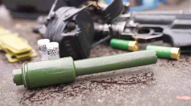 Первый патрон в магазине автомата холостой. Его импульса хватает метнуть этот заряд на расстояние до 50 метров. После чего стрельба ведется обычными пулями.