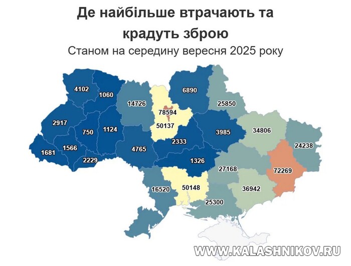 За последний год объёмы утерянного/украденного оружия почти удвоилось: с 270 900 единиц в сентябре 2024 года до 491 426 единиц в сентябре 2025 года. Львиную долю пропавшего составляют автоматы — более 149 000 единиц. На втором месте находятся охотничьи ружья — 135 000 единиц. Также пропало около 30 000 пулемётов и почти 19 000 гранатомётов.